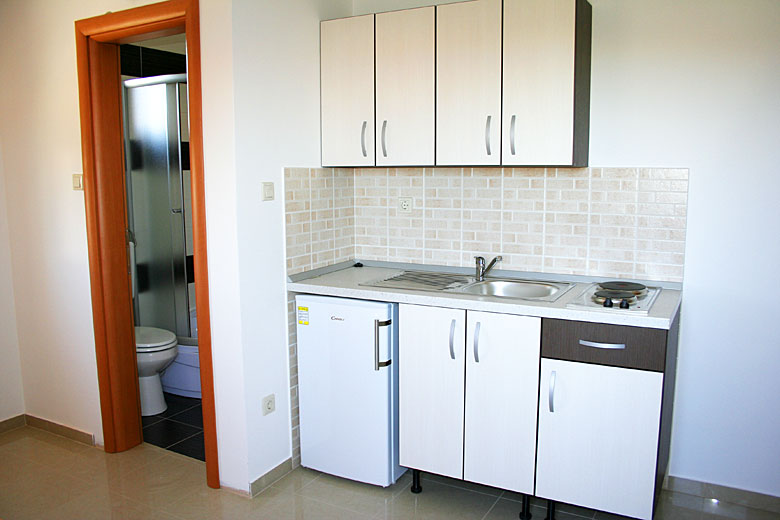 Potpuno nova kuća nalazi se u mirnom mjestu Mandre, 100 m od šljunčane plaže. Objekt sadrži 11 potpuno novo uređenih apartmana.